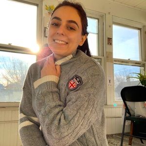 Worn only several times. Awesome and original looking piece THATS perfect for layering & making a statement! Super thick and perfect for these winter months. Long enough to wear with leggings/jeggings.