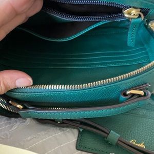 Beautiful pebble leather in Leaf green see photo for description and what fits in bag. Looks small but packs a punch. Retail $248.00