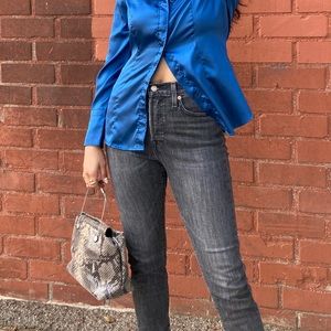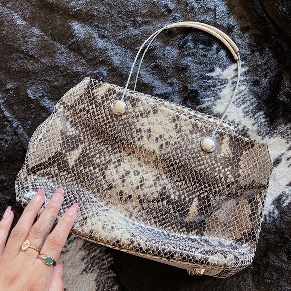 Vintage snakeskin print bag. Wire/metal strap. Amazing condition. Made in Italy. Medium size purse.