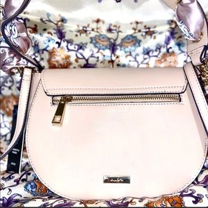 New. Never used. Aldo Chamusca Flap Over Bone Beige Crossbody bag. Gold zipper detail. interior zipper pocket. Removable shoulder strap with intertwined scarf. Adjustable crossbody strap. Perfect Condition. Tags Attached.