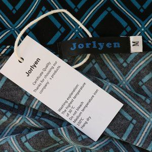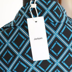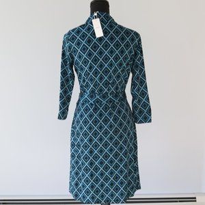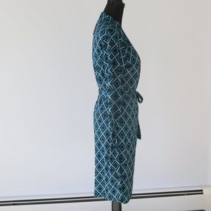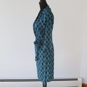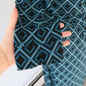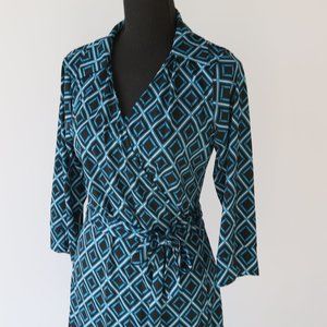 This is a new Black & Teal Geometric Diamond print Wrap Dress by Jorlyen in size Medium