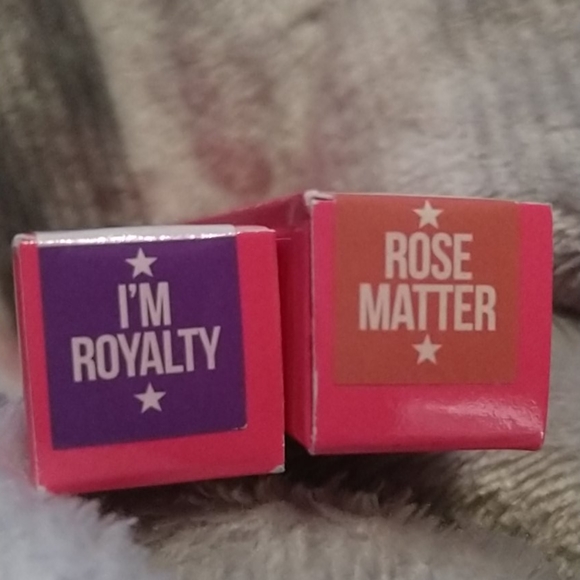 I'm selling my brand new never swatched or used liquid lipstick in shades I'm Royalty and Rose Matter. Both in come in their original boxes and only took photos to show they are good. I accidentally ordered these twice and I don't need both of these shades. Price is for both