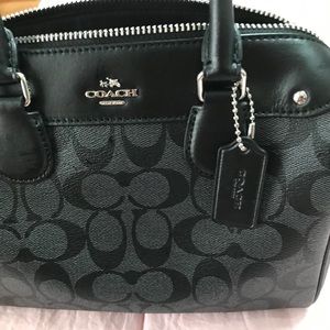 ❌❌❌❌SOLD❌❌❌⭕️Coach Mini Bennett Set includes Wallet and Card Holder Excellent Condition Color: Black And Smoke Zip Closure Fabric Lining Handles 4”drop Detachable Strap with 23” drop for Shoulder or Crossbody 9”L x 6”H x 5” W. Wallet: Bill Compartment, ID Window, Zip Pocket, Snap Closure 5”L x 3.5 H x1/2 W Mini Skinny ID Wallet With Attached Key Ring. ALL MATCHING SET IN EXCELLENT CONDITION🥰🥰Silver Hardware🥰🥰WILL CONSIDER REASONABLE OFFERS❌❌❌❌❌❌❌❌SOLD❌❌❌❌❌❌❌