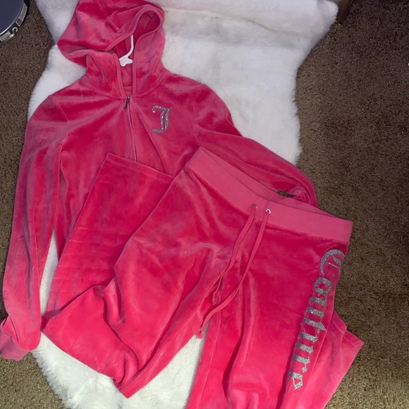 So cute and such a y2k staple!! This tracksuit is from my own 2000’s juicy couture tracksuit collection and was bought at their store! I still own a few and sold one earlier so I figured I could part with one more! Such a cute and rare piece to have and still in amazing condition!! This is a bundle for both the sweater and bottoms and are both a size medium! In excellent condition and lettering and glitter still prominent and unworn