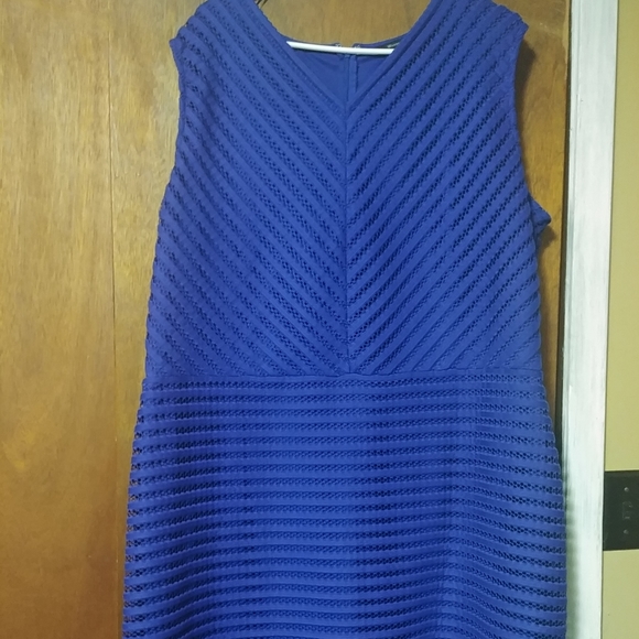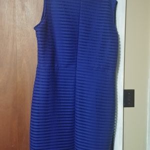 This Royal blue sleeveless dress with details in the fabric is beautiful and sure to turn heads. Add your favorite accessories or shawl and you will be ready to go!!! Very gently worn and machine washable.