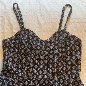 Fit and flare dress, elastic back makes it comfortable and easy to wear. Comfortable length not short on me and I’m close to 5’6 Front length from shoulder 35” back 37”