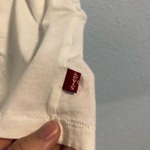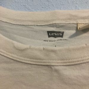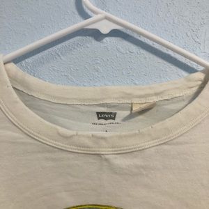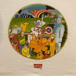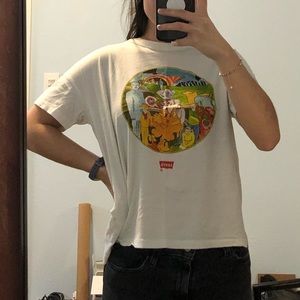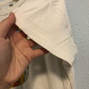off-white t-shirt with distressed look (definitely not holes from wear and tear lol). super cool vintage groovy design