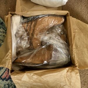 Still in original shipping packaging. Never worn, just tried on for size. Fits better on a narrow foot.