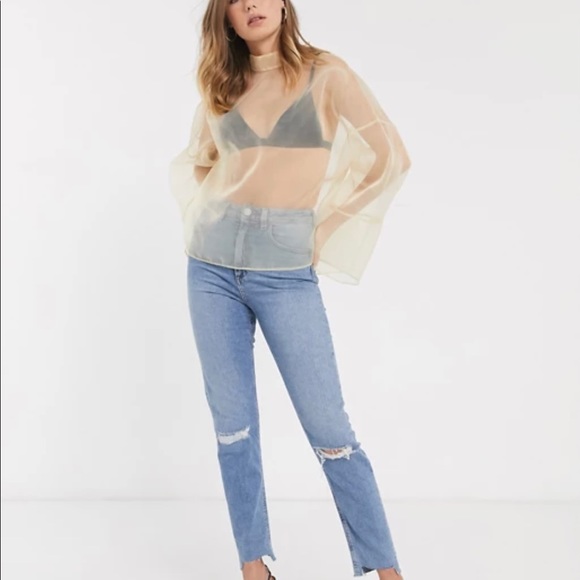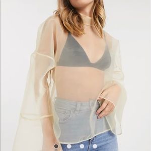 Perfect cover up, or minimal top to dress up or dress down. Size 0 but fits a little big. #asos #sheer #minimaltop #higneck