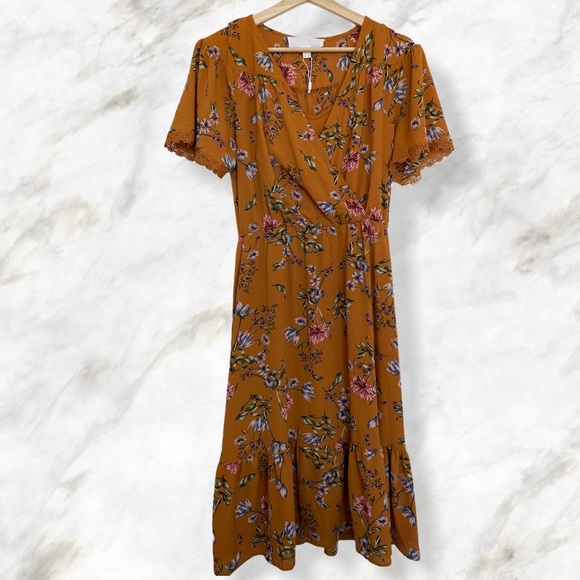 Super fox Floral v neck summer dress shirt sleeve