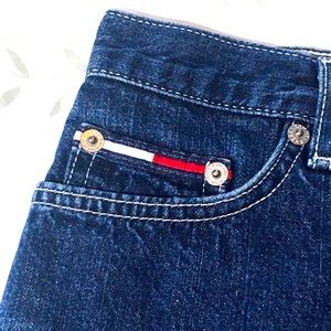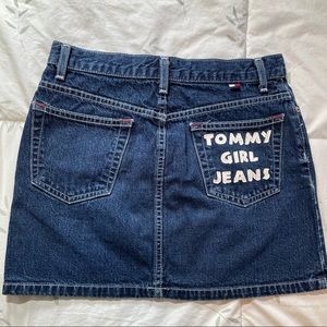 Super trendy Tommy Hilfiger jean mini skirt. So many fun details like the back pocket writing, and their signature red and white details. So y2k. Perfect for spring! Juniors size one