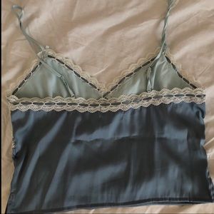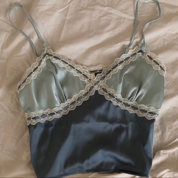 Trendy dreamy romantic dainty baby y2k fairy milkmaid pixie princess ethereal bratz cottage core milkmaid teddy pastel urban outfitters London satin lace light blue and turquoise spaghetti strap camisoleš¦