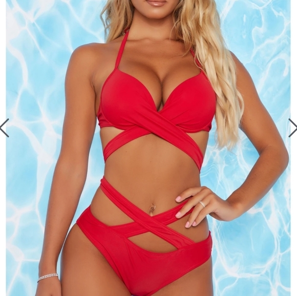 My friends are so sweet, but they must not know that I'm a thick love && that I was not going to be able to get into this bathing suit! 😢 Haha! They bought me one in red and white. Both are being sold here. Never have been worn . I didn't even try the bottoms on. Lol.