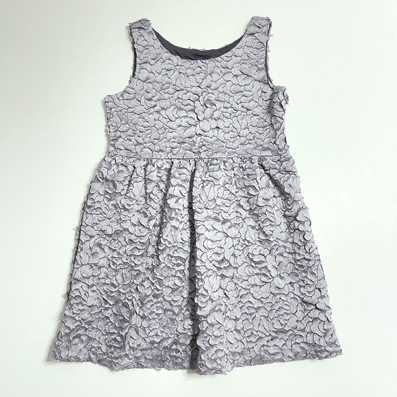 Beautiful Baby Gap silver dress with floral detailing and cotton lining. Has side zipper. Girls size S (6-7).