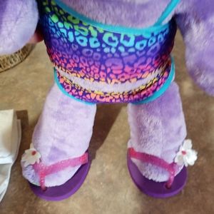 SHE IS IN EXCELLENT USED CONDITION FROM MY PRIVATE COLLECTION NEVER PLAYED WITH! SHE COMES WITH A PURPLE ANIMAL PRINT BIKINI ,SANDALS, HK TOP WITH WHITE JEAN CRYSTAL SHORTS.ALL IN VERY GOOD USED CONDITION...I PUT A HAWAIIAN FLOWER FROM BABWS ON HER EAR...IT IS REMOVABLE....