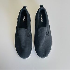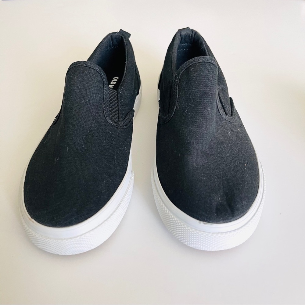 NWOT Old Navy Kids’ Black Canvas Slip On in Size 1 New, never worn but with a small smudge on the bottom sole. See pics for details.
