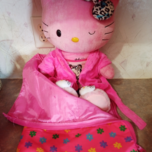 BABWS SHES FROM MY PRIVATE COLLECTION NEVER PLAYED WITH....GOOD USED CONDITION....SHE HAS HER ORIGINAL BOW...SHE COMES DRESSED IN HER LEOPARD PRINT PAJAMAS, HK SLIPPERS AND BATHROBE WITH HER SLEEPING BAG ❤️❤️❤️❤️❤️HELLO KITTY CHAIR NOT FOR SALE!