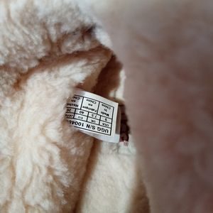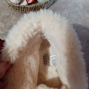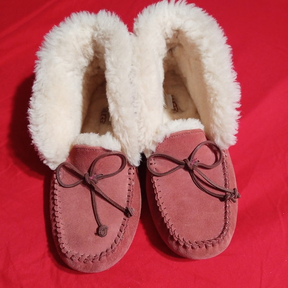 THEY RUN SMALLER BECAUSE OF THE SHEARLING FUR LINED INSIDE...IM A 9 AND THEY ARE TIGHT ON MY FOOT I HAVE TO GET A SZ 10.....THEY ARE A MAUVE COLOR ON THE OUTSIDE. BEAUTIFUL SLIPPER/ INDOOR OUTDOOR SOLES...NO BOX