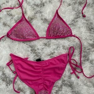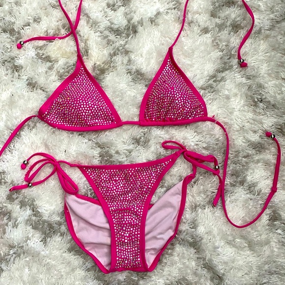 Cute cheeky summer bling bikini. Few studs are missing Which are shown in pics