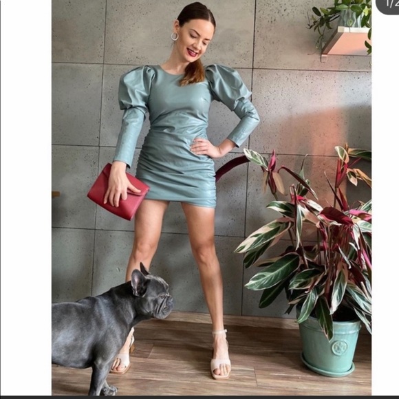 Zara Vegan Leather Puff Sleeves Mini Dress. Stylist, cute, mini dress with puff long sleeve and ruching on both sides. Concealed zipper in the back for closure. Dress is lined.