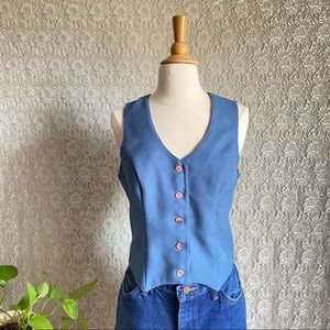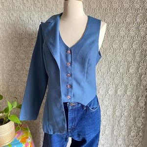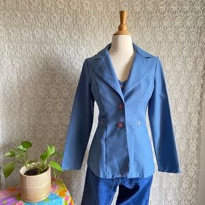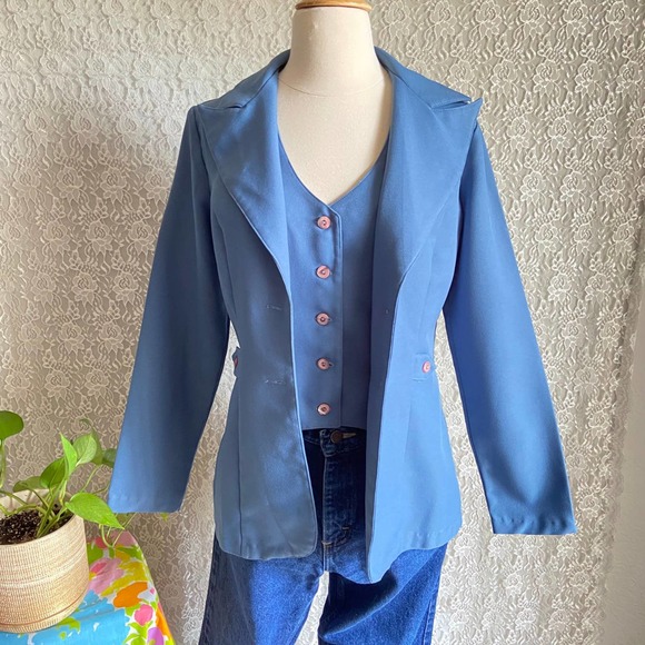 VINTAGE DUSTY BLUE BUTTON UP JACKET AND VEST 70S RETRO POINTY COLLAR CHORUS LINE of CALIFORNIA SIZE 11 - 12
