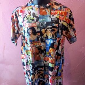 Female R&B/Rap Magazine Print Cute comfy fit midi dress you can dress it up or down .(never worn)