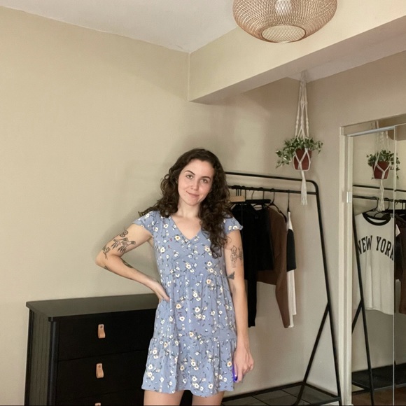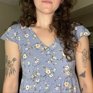 pink rose - blue floral dress - never worn