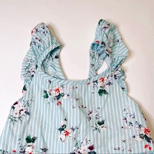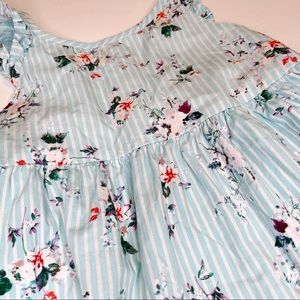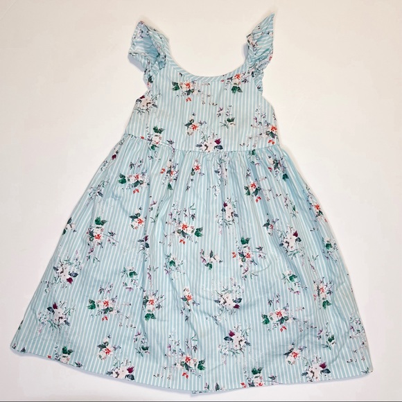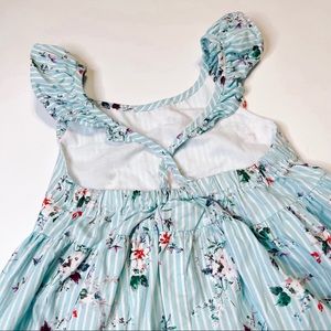 Lovely Bonnie Jean blue and white dress with floral design in size 6 girls with ruffle cross back, non-adjustable straps.