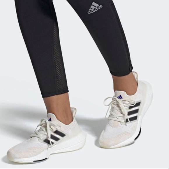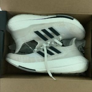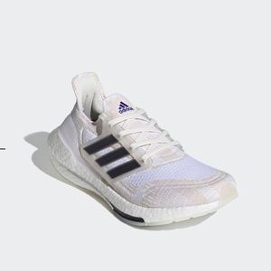 Brand new ultraboost 21 primeblue shoes from Adidas. Women’s size six but runs big and fits a seven. The shoes are made with recycle material made with ocean plastic. Very comfortable and NWT in the original box!