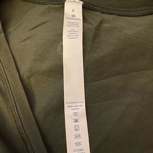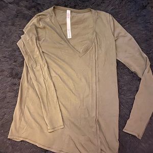 Up for sale is this super cute long sleeve lululemon top it can be worn in two ways , either sporty or more dressy ! It’s a size 6, and is in pretty good condition. Comment or message me for any questions or offers! Color is army green.