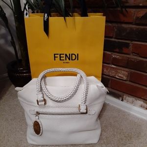 Beautiful large white leather with braided handles.