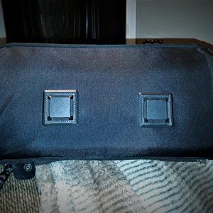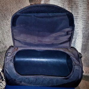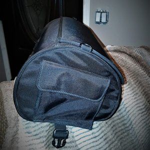 Gently used, faux leather and heavy mesh, large fender bag for MC by TOUR MASTER... has a hard body with a dome shape. pockets on both sides, Velcro closure. no rips, holes, or damage.