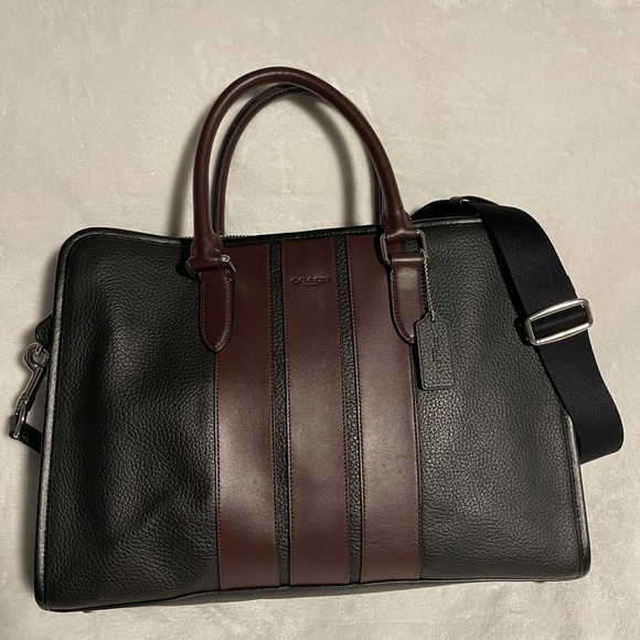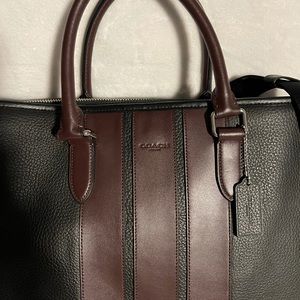 Coach Men’s Slim Briefcase in Black/Burgundy pebbled leather! Has multiple compartments and separate compartment for laptop! Only used once! Great condition! Retail price $550!. Accepting offers!