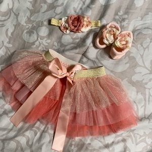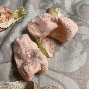 Another super cute baby photo outfit. Perfect for those sweet newborn pictures. This is gold and different shades of “country” pink. Rustic pink.. super cute. Comes with the headbands and little socks. Another one we tried and didn’t work on our daughter.