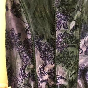 Stretchy, semi sheer material with velvety floral details.