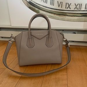 This Antigona is in the small… I have a mini as well, ( I have 3 😂) I love this bag.. which I would consider selling but I’m not sure it’s a color you’d be interested in.. it’s a pop of color that I only use for summer.