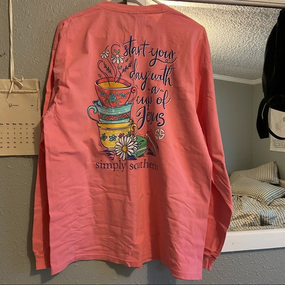 Simply Southern long sleeve pink shirt, size XL