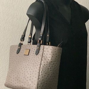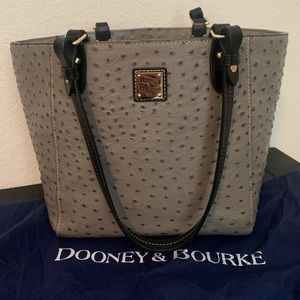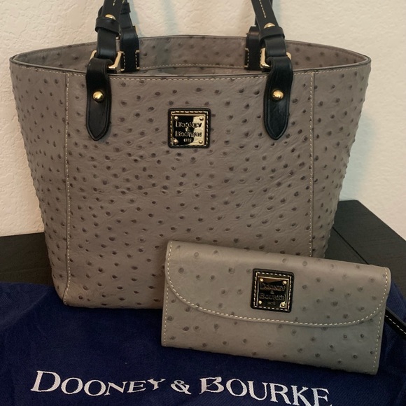 Dooney & Bourke Gray with black trim Ostrich Tote with matching Trifold Clutch Wallet!! Dust bag included.