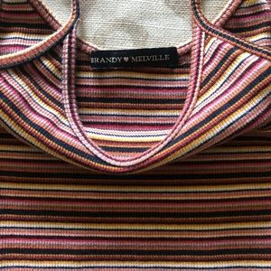 Brandy Melville. Pink, orange, white, abs black stripes. Very stretchy. Form fitting. One size fits all, but best for size XS and S. Super cute!