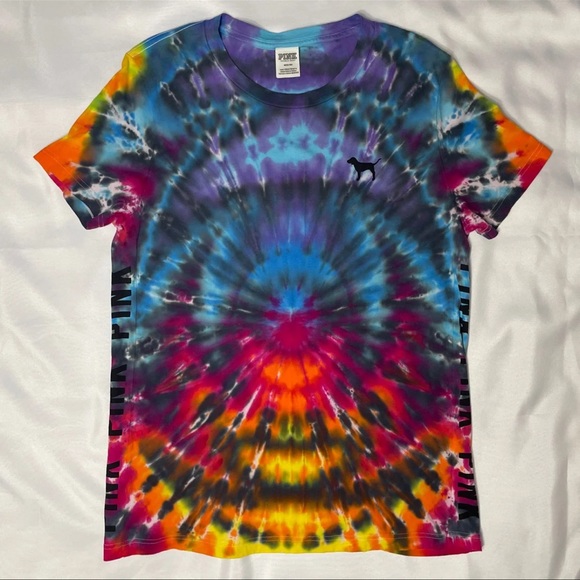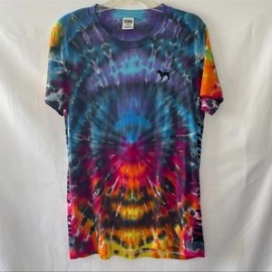 ✴︎Victoria’s Secret PINK Custom Fire & Ice Tie-Dye Campus Crew T-Shirt✴︎