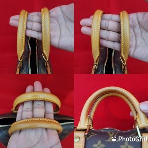 monogram excellent condition not faded, lv print and flower is so obvious not fading, gold hardware, no corner issue, no cracking handle, minimal water marks