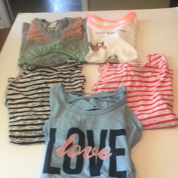 Girls tee shirt bundle white yoga size 14 new,athletic club size large new,blue striped size 14 new,pike striped 12 new,love blue size 5 new