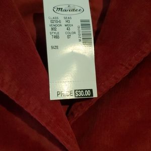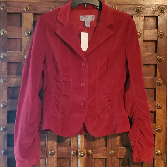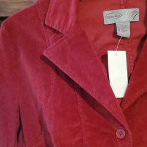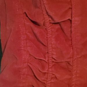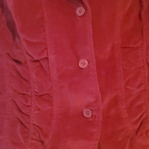 Red corduroy blazer. Rushing on the front and sleeves. Measurements pit to pit 20", lenght pit down 12.5, lenght shoulder down 20" Brand new (16)