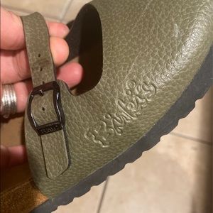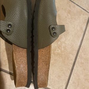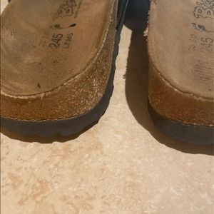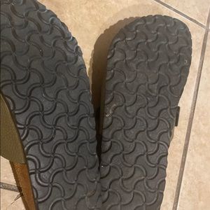 Women’s size 7 men’s 5 Birkenstock in good used condition. Slight scuffs on the right shoe as seen in photos and slight ware on the right shoe but other than that is good and lots of life left.