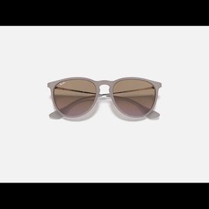 rayban erika violet/brown gradient sunglasses with silver temple pieces. comes with cleaning cloth and classic rayban black case. in excellent condition only flaws are 2 small scratches on the left lens as pictured that are barely noticeable and not noticeable at all when worn. feel free to ask if you have any questions!