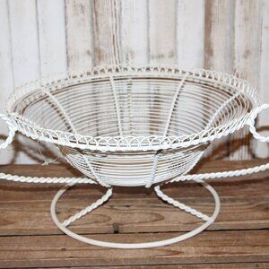 Unique vintage 6" tall x 13" wide x 5.5" wide across lower interior circumference wrought iron wire basket with galvanized patina. Fill with seasonal goodies for year round use! Structurally sound and solid. Great centerpiece basket for farmhouse decor!