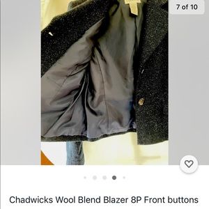 Women’s Short Blazer Approx 20” from shoulder to hem. Approx 17” from armpit to armpit. Front buttons and pockets. Preowned in very good condition.
