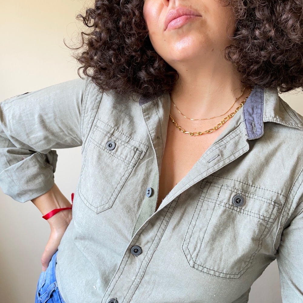 Converse One Star Button Front Shirt Green Size XS