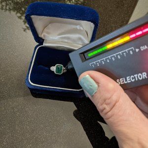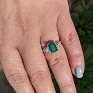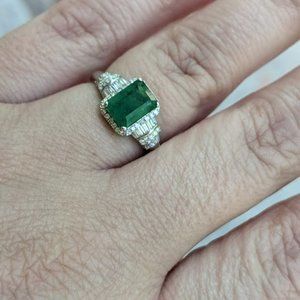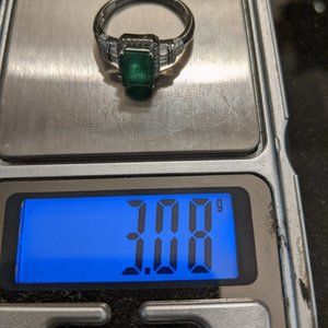 Stunning solid 14k white gold natural emerald and diamond EFFY BH Ring. Ring holds a 8x6 natural emerald approx 1.80cts. There are 60-1mm single cut round diamonds and 16 baguette diamonds for a total of approx 0.48cts. Please see photos for gold and diamond testing. Ring is a size 6 3/4. Stamped EFFY 14k BH Ring is pre-owned but in excellent condition. No offers please. Price is firm.