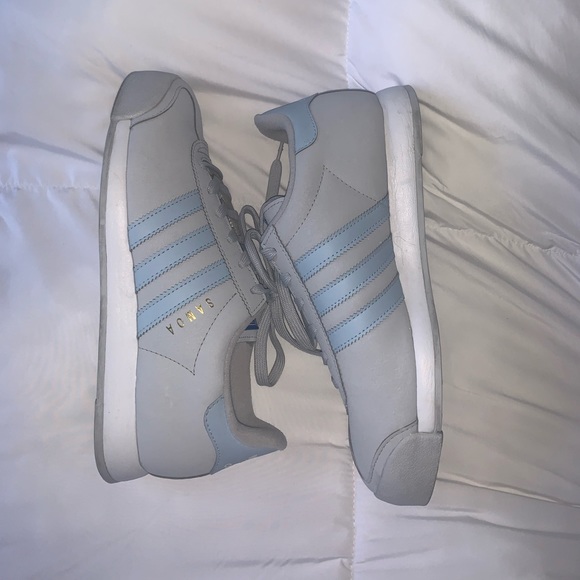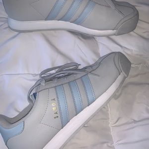 Gently worn Adidas Samoa Light gray and light blue Size 7 1/2 women’s